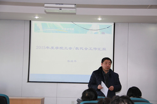 向明友经理向与会人员介绍了学校2016年的发展规划,并分析了学院发展的机遇和挑战,介绍了学院2015年工作的整体成绩和2016年的工作要点,表态会继续带领学院的班子成员,一如既往的落实各项举措,为学院团队建设、科学发展等做出新的贡献。