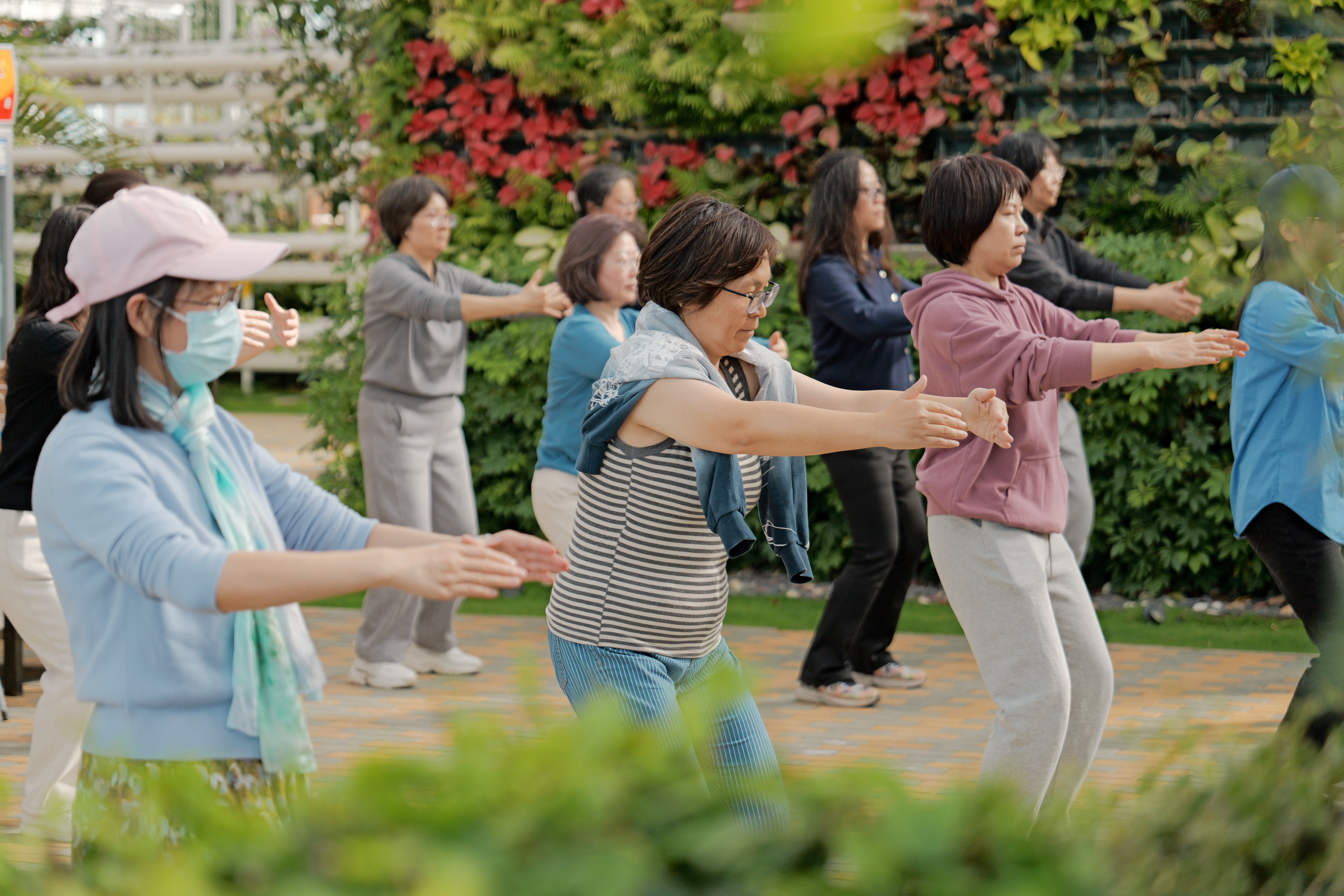 随后,学院工会邀请北航体育部副教授周若夫老师,为大家教授传统养生功法——八段锦。教职工们在周老师的指导下,一招一式地练习,感受中华传统养生文化的魅力。舒展筋骨、调和气血,八段锦不仅让大家在忙碌的工作之余放松身心,也促进了健康生活理念的推广。