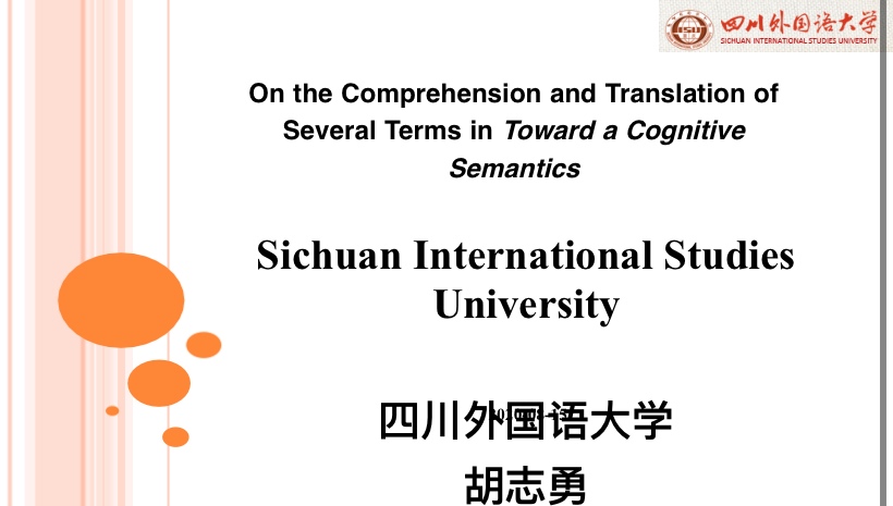 四川外国语大学胡志勇博士的报告“On the Comprehension and Translation of several Terms in Toward a Cognitive Semantics”基于他在翻译Talmy两卷本巨著《认知语义学》时的感悟和理解,他阐释了相关术语界定和处理的原因。胡老师认为译著中仍然存在的不足,这也显示出对于Talmy认知语义学的理论探索是常新的。