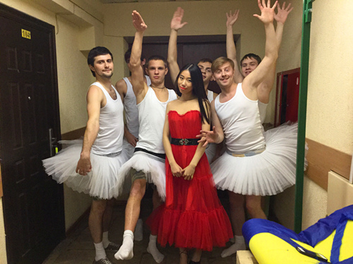 在莫航几乎每一座教学楼里都有小餐厅,我们的午饭一般是在学校解决的,这大概就相当于国内学校的食堂吧!但是俄罗斯学校的食堂安静、精致、整洁,在这里吃饭就像在自己家里一样,好吃又不贵。也有同学自己带饭到学校来,坐在餐厅享用自己的午餐,吃完饭连垃圾一起带走,去上下一节课。为了更好地融入这里的生活,我加入了莫航的艺术团,为新生晚会准备节目。排练期间,我跟着歌曲组的同学们一起练声,看他们跳舞。我的中文歌曲吸引来了很多小伙伴,他们不但对中文感兴趣,还对中国的音乐很感兴趣,与他们的交流也让我的俄语水平有了进一步的提升。老师说我是第一个在新生晚会上表演的外国人,我不好意思的告诉她,歌曲是无声的语言,为我带来了朋友。最终的新生晚会上我被授予了“天使般的声音”的荣誉称号,令我感动的是,纪念T恤上的字居然是用中俄双语写的!
