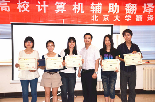 第一届北京高校计算机辅助翻译邀请赛”复赛现场展示及颁奖典礼于2012年6月17日上午在图灵公司活动中心召开。到场评委嘉宾有中国翻译协会本地化委员会秘书长崔启亮老师,北京大学语言信息工程系秘书高志军老师,北京大学英国威廉集团官网MTI中心主任助理、北京大学翻译协会创始人王华树老师,红帽软件(北京)有限公司研发部总监邵宇先生,SDL软件科技(深圳)有限公司教育事业部总监王欣女士,北京语智云帆科技有限公司CEO魏勇鹏先生等。