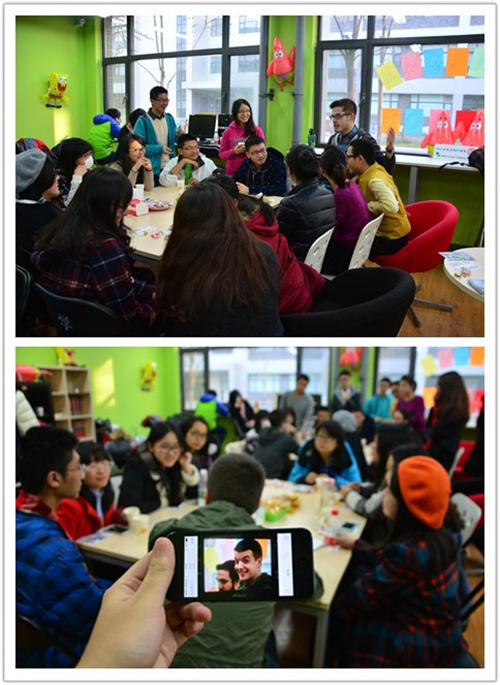 在活动的最后,嘉宾准备的show time节目和现场同学的即兴表演将活动推向了高潮:Stuart为大家播放了《C4》节目的视频,“舌尖上的英国”“来自星星的Rob”“天坛公园老人记”让大家捧腹大笑;Jonathan自弹自唱了二手玫瑰的“春天的故事”;Max不甘示弱,和同学一起为大家带来舞蹈“小苹果”,点燃全场气氛;更有被现场气氛感染的现场同学即兴上场对唱《Counting Stars》、吉他弹唱《My Love》……多才多艺的同学给大家带来的惊喜成为本次活动的一大亮点。